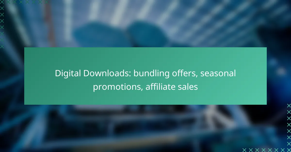 Maximizing sales of digital downloads can be achieved through strategic bundling offers, seasonal promotions, and affiliate sales. By combining complementary products and implementing time-sensitive discounts, you can enhance customer value and drive revenue. Additionally, leveraging affiliate partnerships allows for expanded reach and increased sales potential through commission-based promotions.