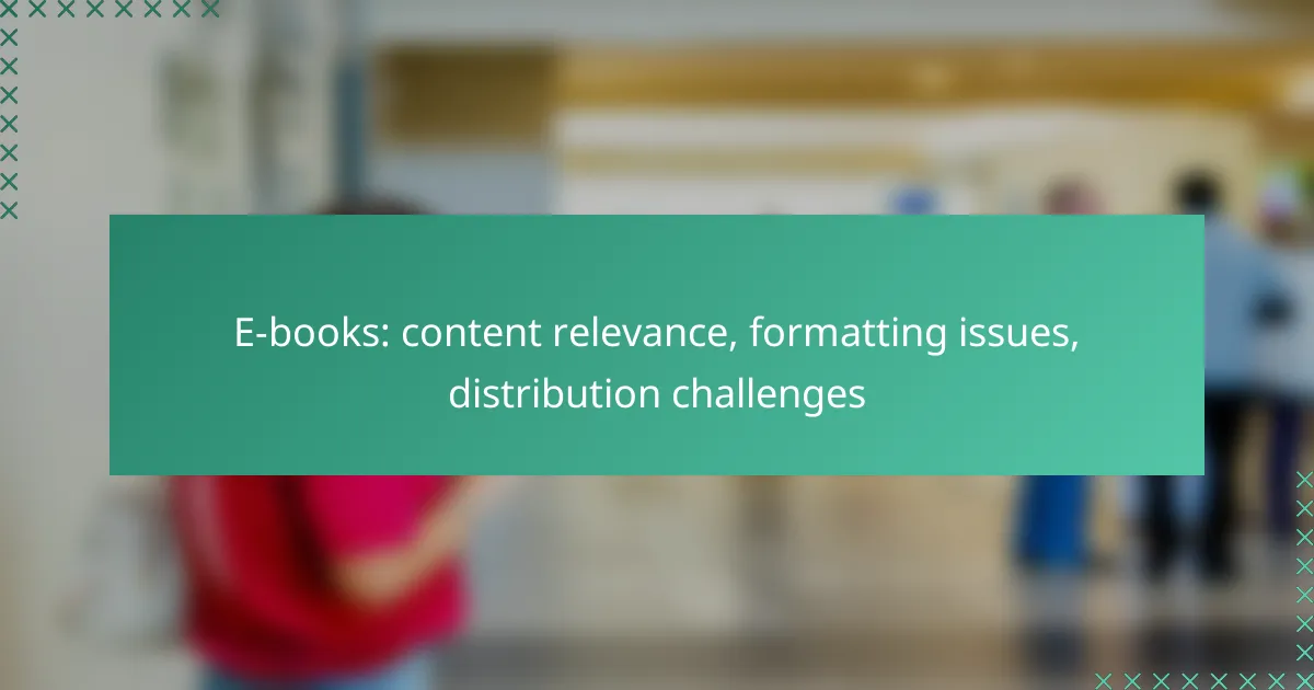 E-books have transformed the way readers consume literature, but they come with their own set of challenges, including content relevance, formatting issues, and distribution hurdles. Ensuring that e-books are properly formatted and accessible is crucial for enhancing the reading experience, while understanding audience needs and optimizing content can improve relevance. Additionally, navigating the complexities of e-book distribution, such as platform restrictions and market saturation, is essential for authors aiming to reach a broader audience.