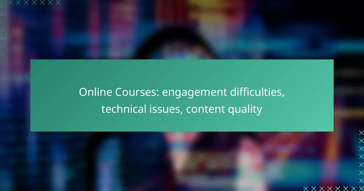 Online courses offer a flexible learning environment but often face challenges such as engagement difficulties, technical issues, and varying content quality. Enhancing engagement through interactive elements and community support is crucial, yet technical problems like platform compatibility and internet connectivity can disrupt the learning experience. Additionally, evaluating the quality of course content is essential for ensuring effective learning outcomes.