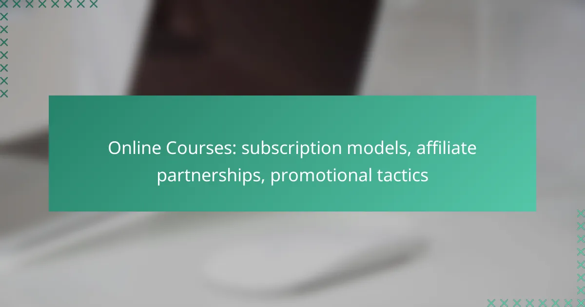 Online courses have become increasingly popular, with various subscription models such as monthly, annual, and tiered pricing catering to diverse learner needs. To enhance course visibility and sales, implementing affiliate partnerships and utilizing effective promotional tactics like social media and email marketing can significantly boost engagement and enrollment rates. Understanding these elements is crucial for course providers aiming to succeed in the competitive online education landscape.