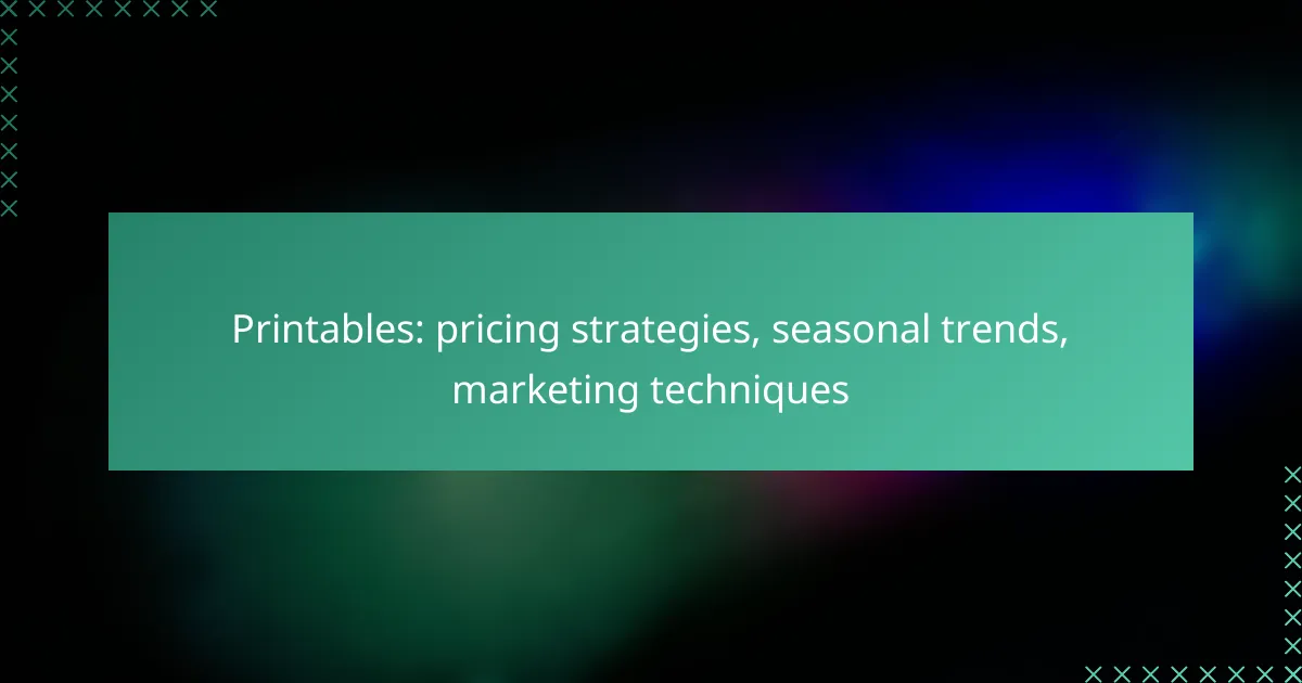 In the competitive market of printables in Canada, understanding effective pricing strategies, seasonal trends, and marketing techniques is essential for success. By analyzing customer value and competitor pricing, sellers can attract buyers while maximizing profits. Additionally, recognizing seasonal fluctuations in demand allows for optimized product offerings, while strategic marketing efforts can significantly enhance visibility and engagement.